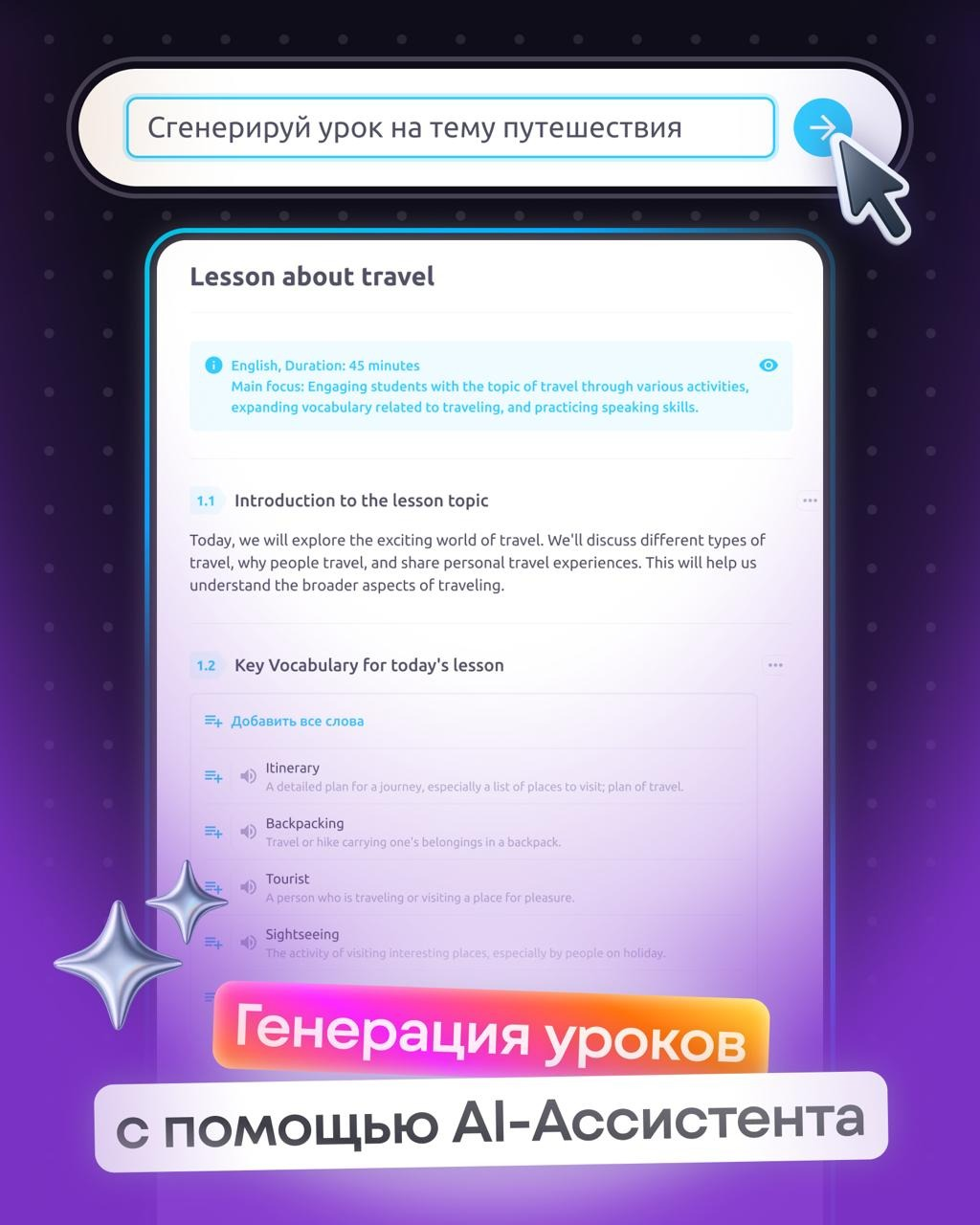 Теперь все просто: один запрос, один клик, короткое ожидание — и у вас готовый урок под конкретного ученика, по нужной теме.
