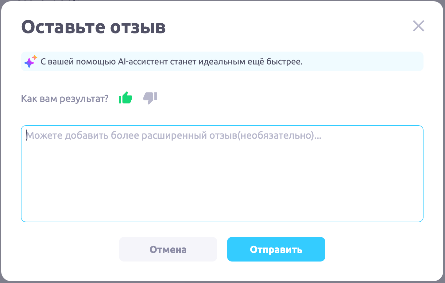 Если вы хотите внести правки в результаты генерации, добавьте уточняющий комментарий и отправьте его — запрос будет повторно обработан, и вы получите новую версию с учетом правок.