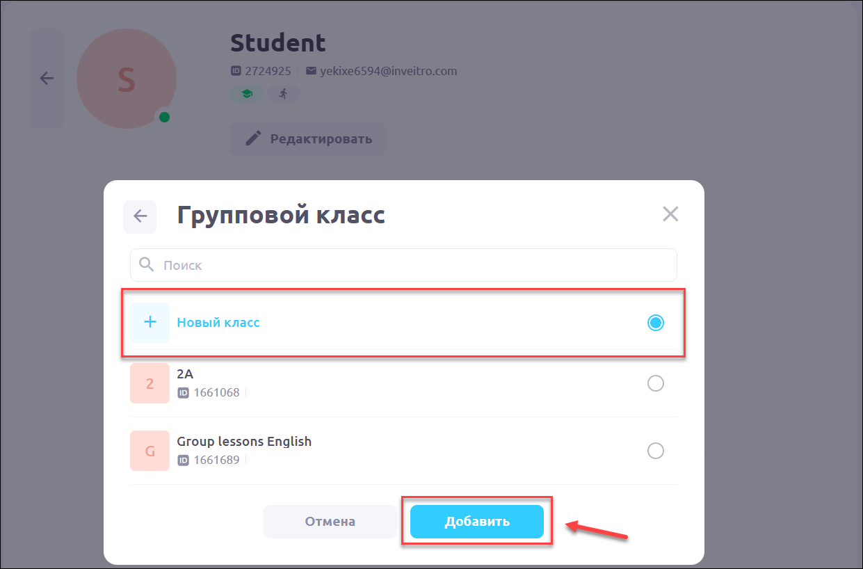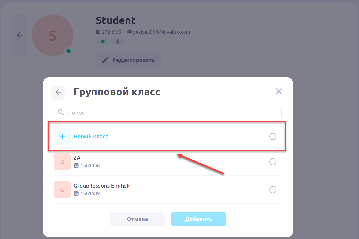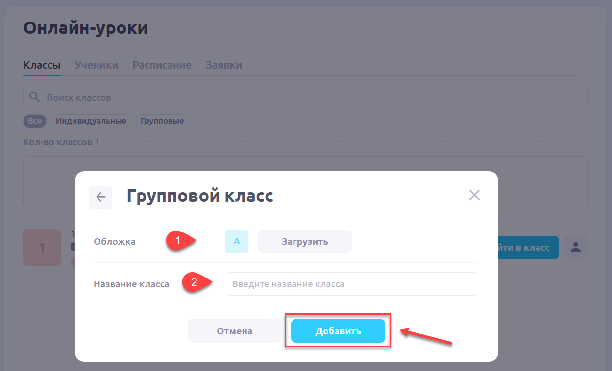 Выберите вкладку Групповой класс: