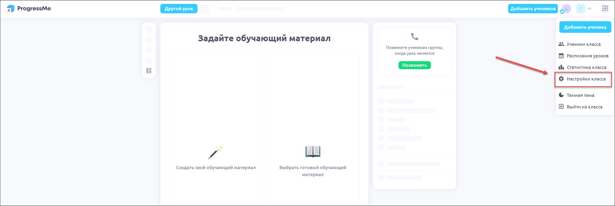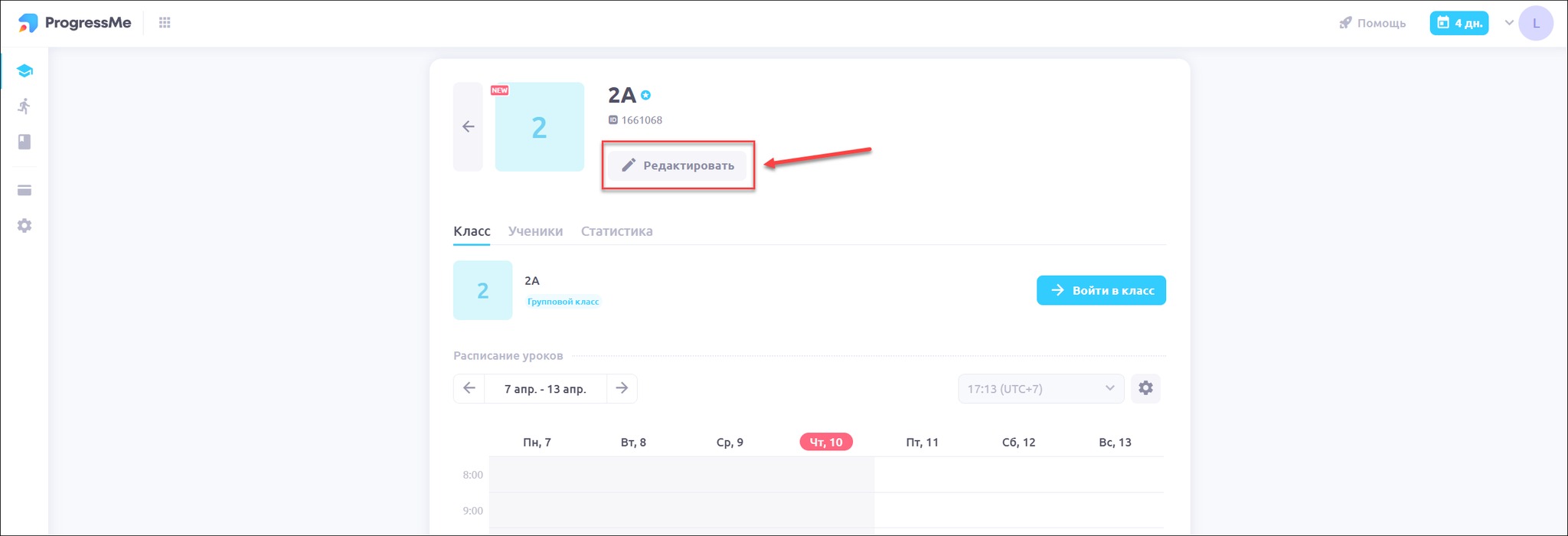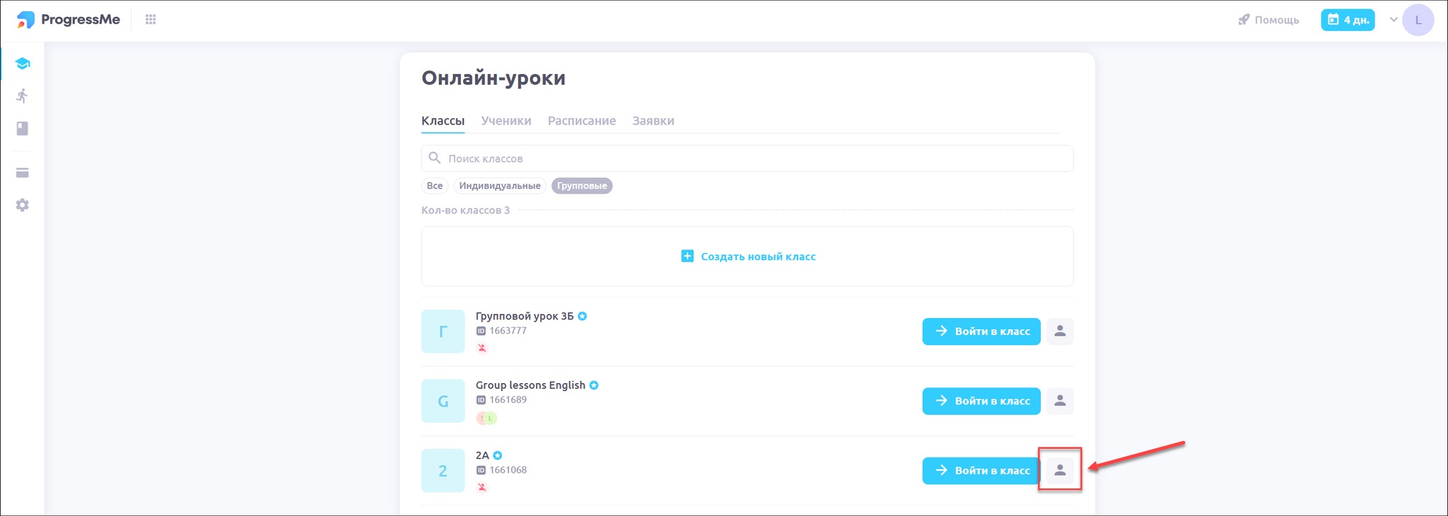 Нажмите на иконку профиля класса
