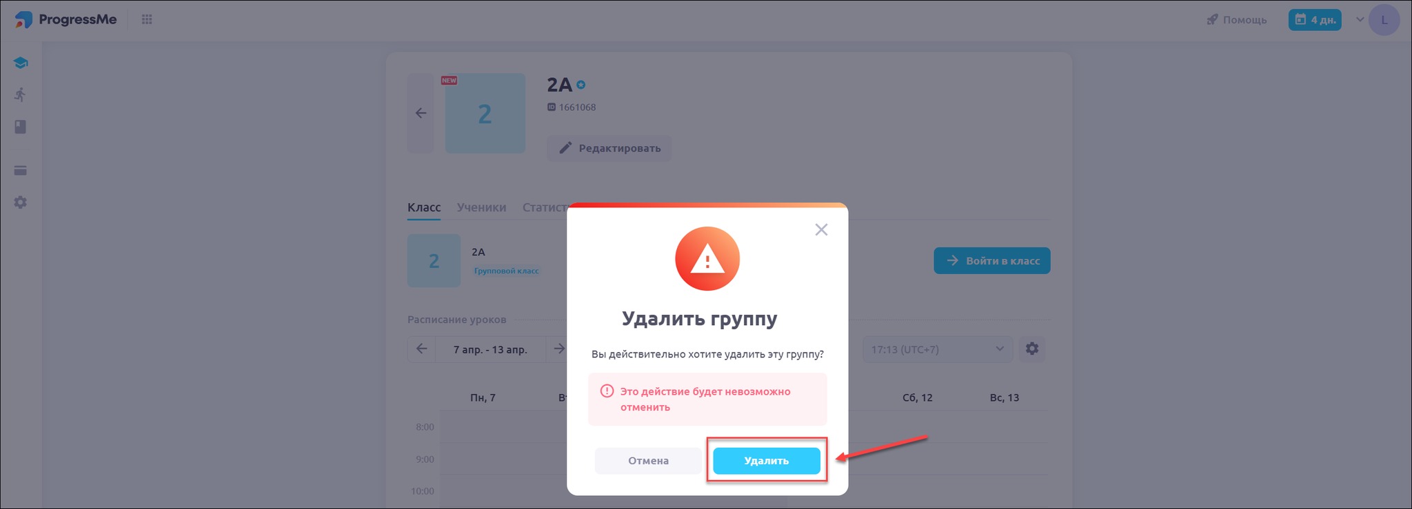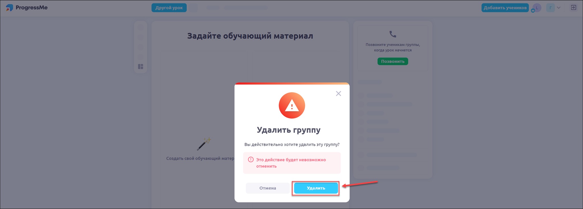 Все материалы, которые были закреплены за учениками, и их прогресс будет удален