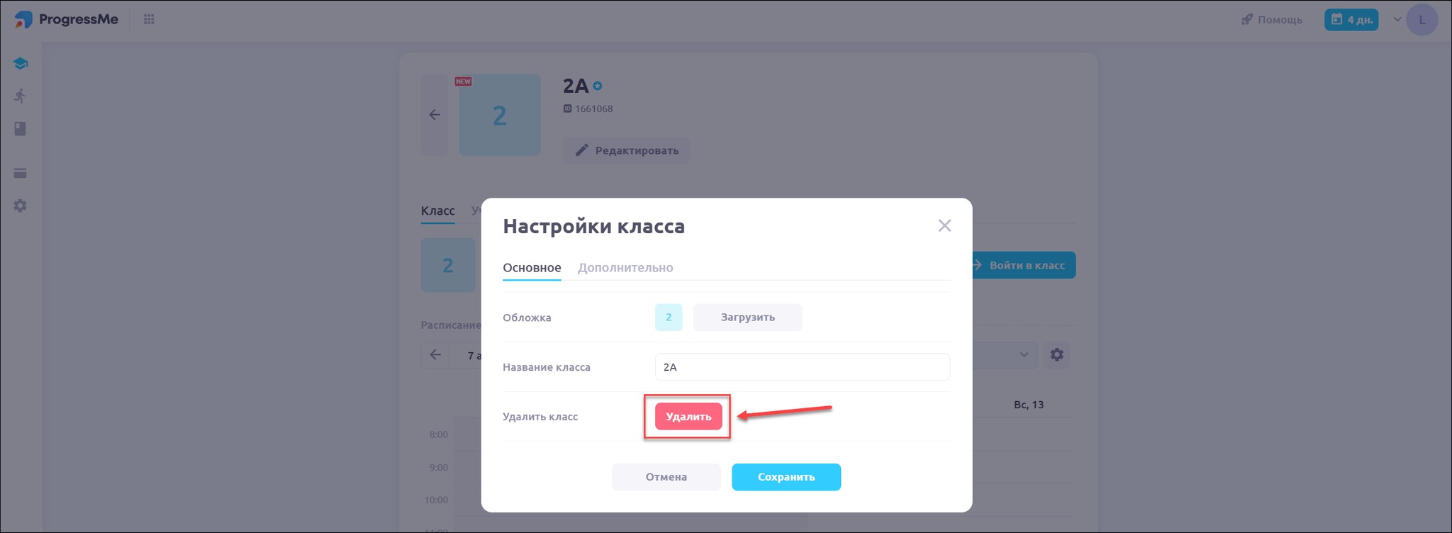 Войдите в класс, который хотите удалить, откройте меню класса и выберите пункт Настройки класса