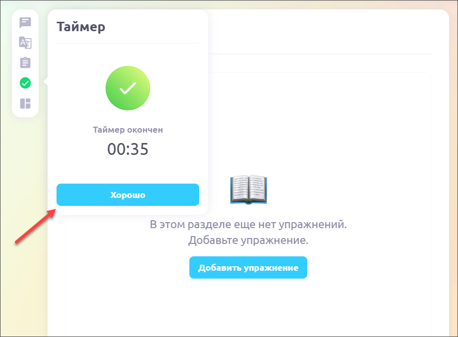 Чтобы запустить таймер повторно, нужно нажать на кнопку Хорошо: