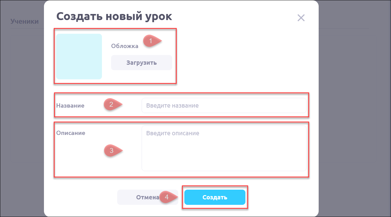 При выборе этого варианта вам будет предложено задать параметры нового урока: