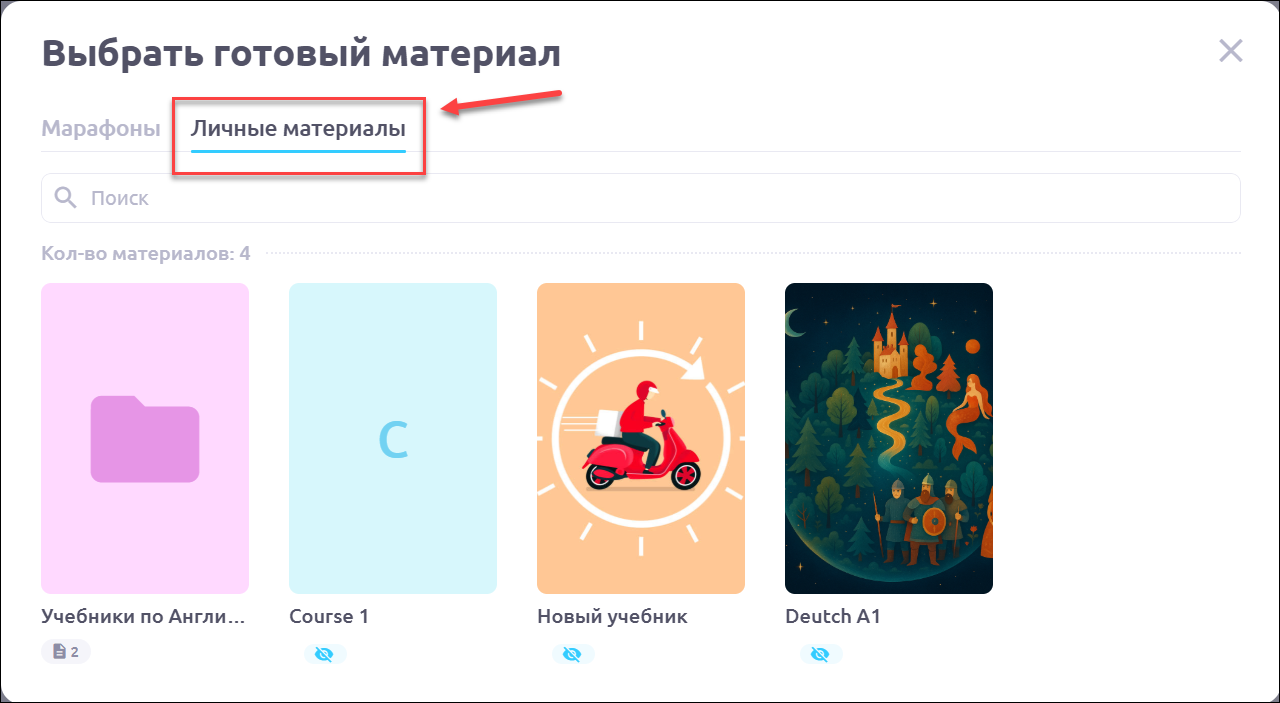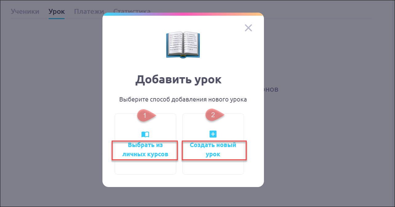 Добавить урок из личных курсов