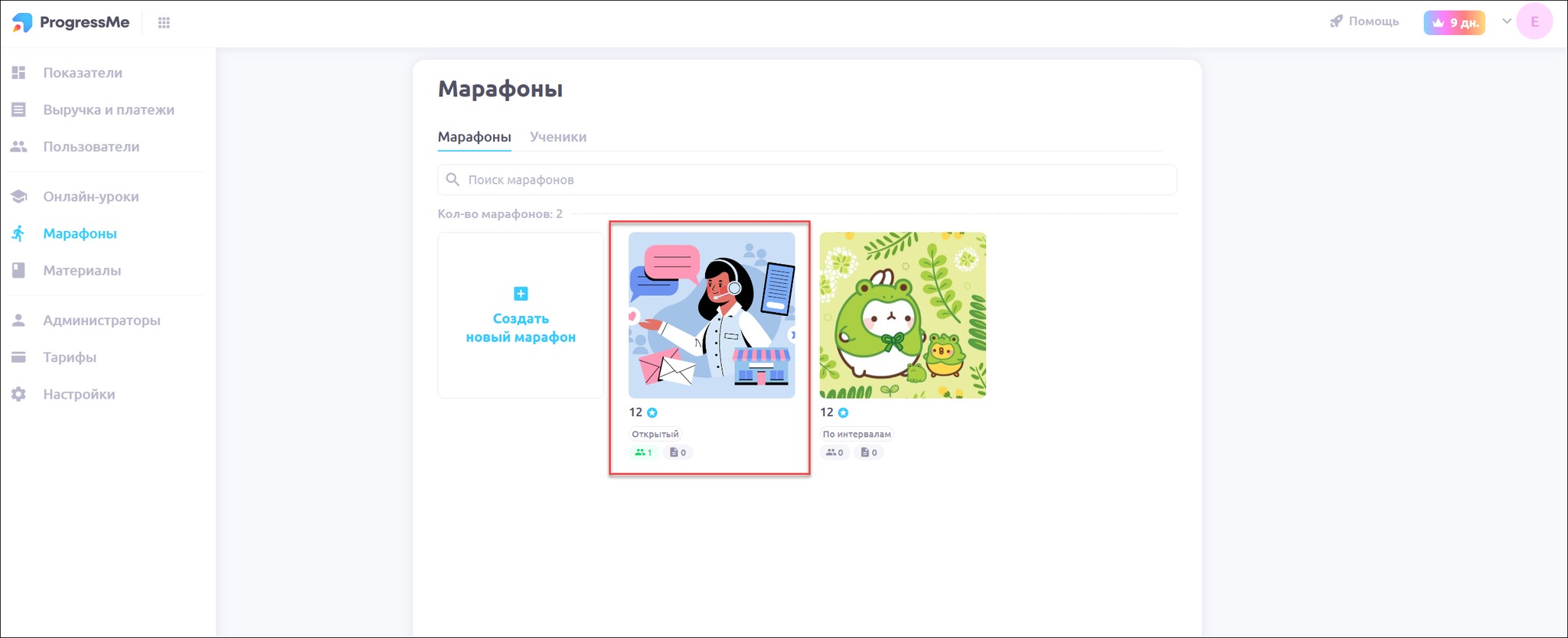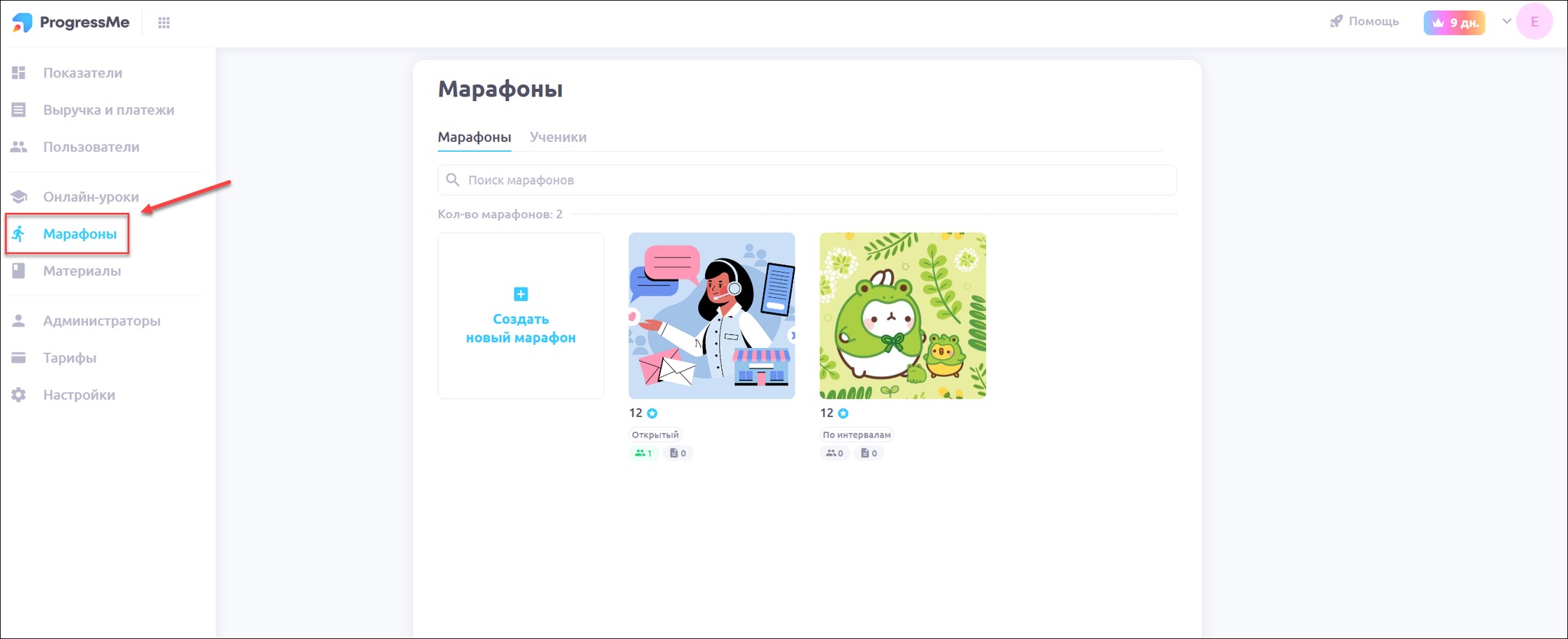 Перейдите в раздел Марафоны: