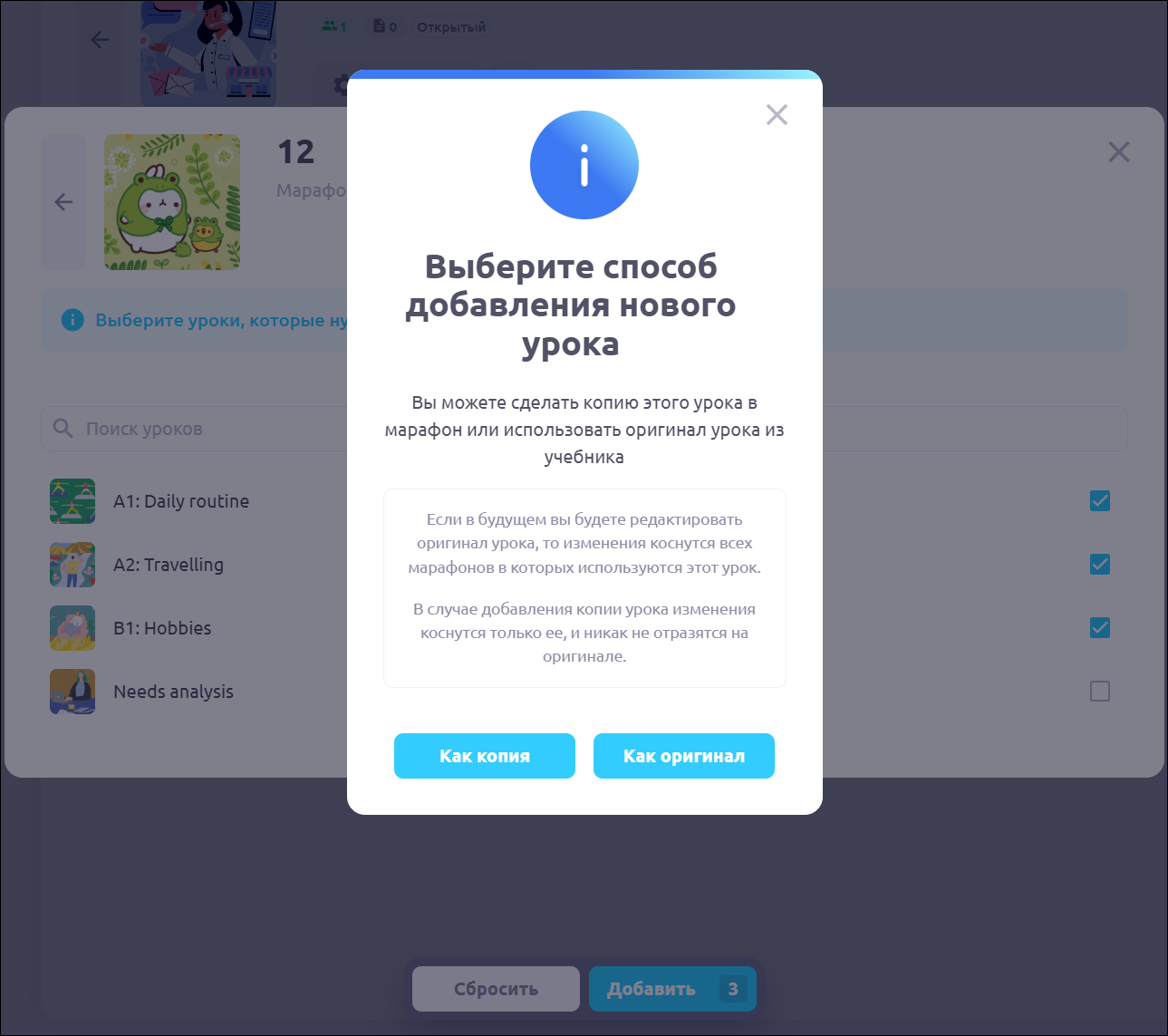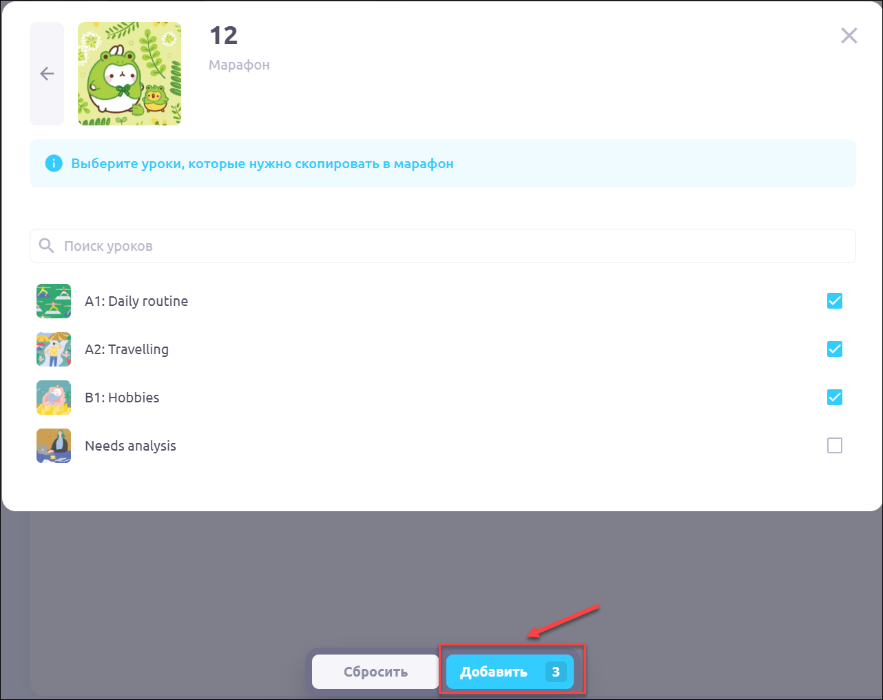 Как добавить урок из другого марафона