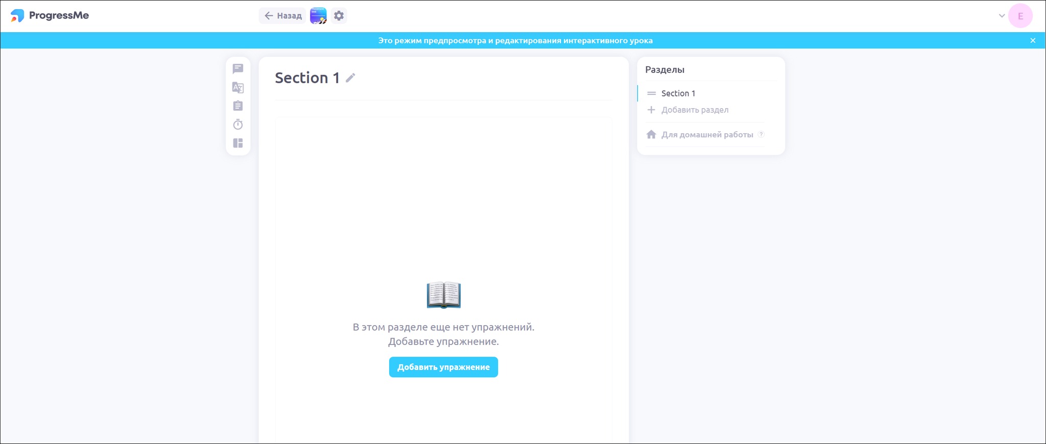 После этого откроется редактор создания уроков и упражнений: