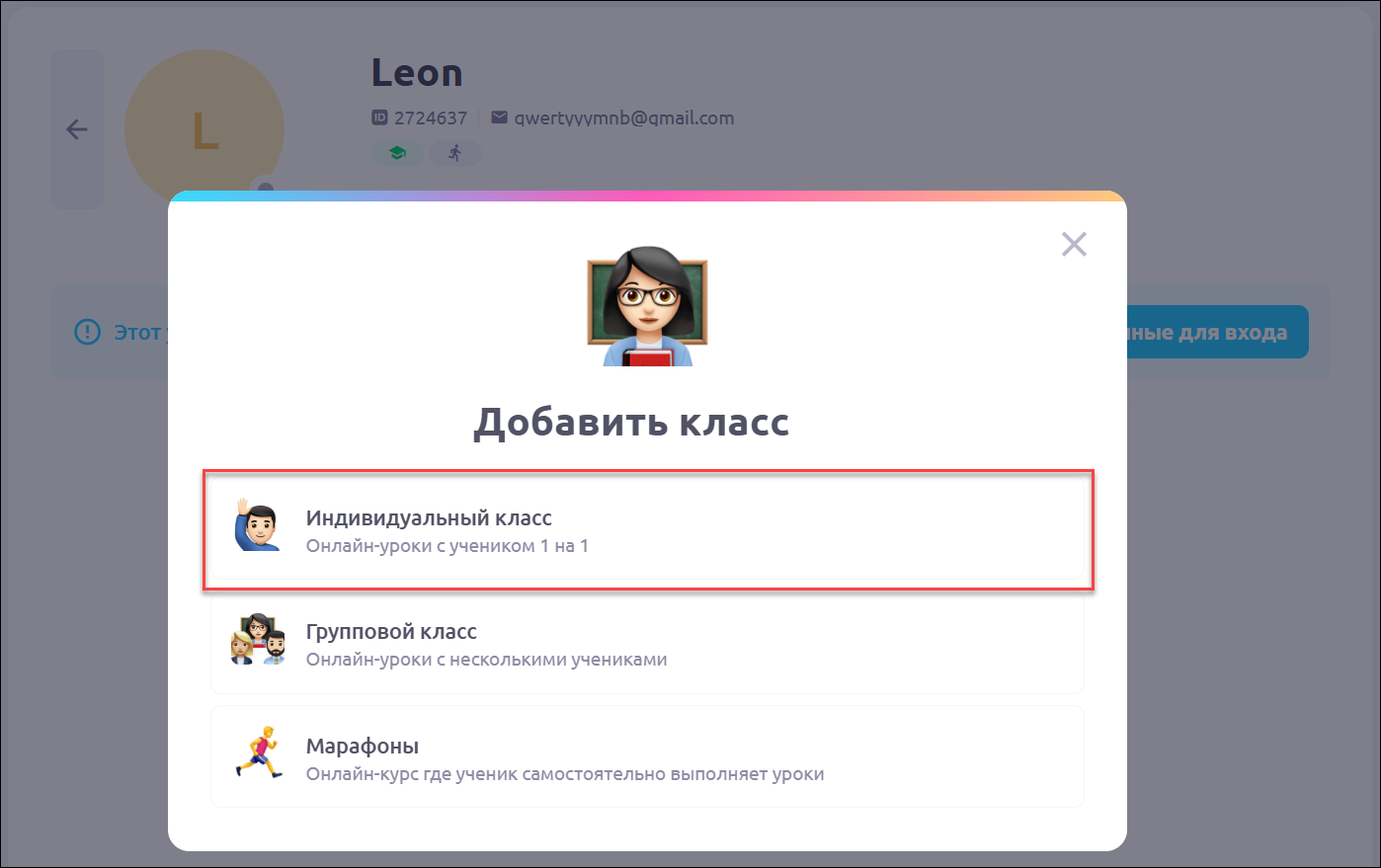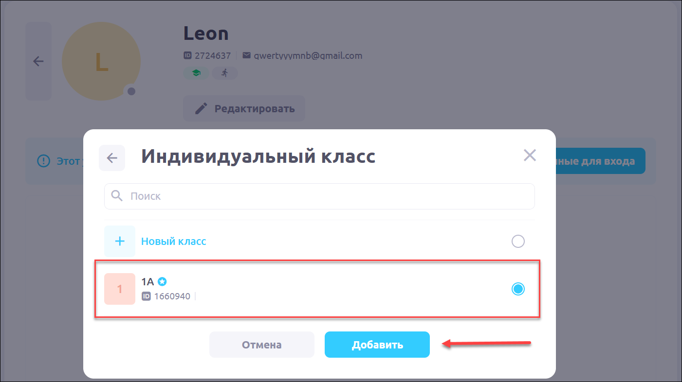 ΠΡΠ±Π΅ΡΠΈΡΠ΅ ΠΊΠ»Π°ΡΡ, Π² ΠΊΠΎΡΠΎΡΡΠΉ ΠΏΠ»Π°Π½ΠΈΡΡΠ΅ΡΠ΅ Π΄ΠΎΠ±Π°Π²ΠΈΡΡ ΡΡΠ΅Π½ΠΈΠΊΠ°, ΠΈ Π½Π°ΠΆΠΌΠΈΡΠ΅ ΠΠΎΠΉΡΠΈ Π² ΠΊΠ»Π°ΡΡ: