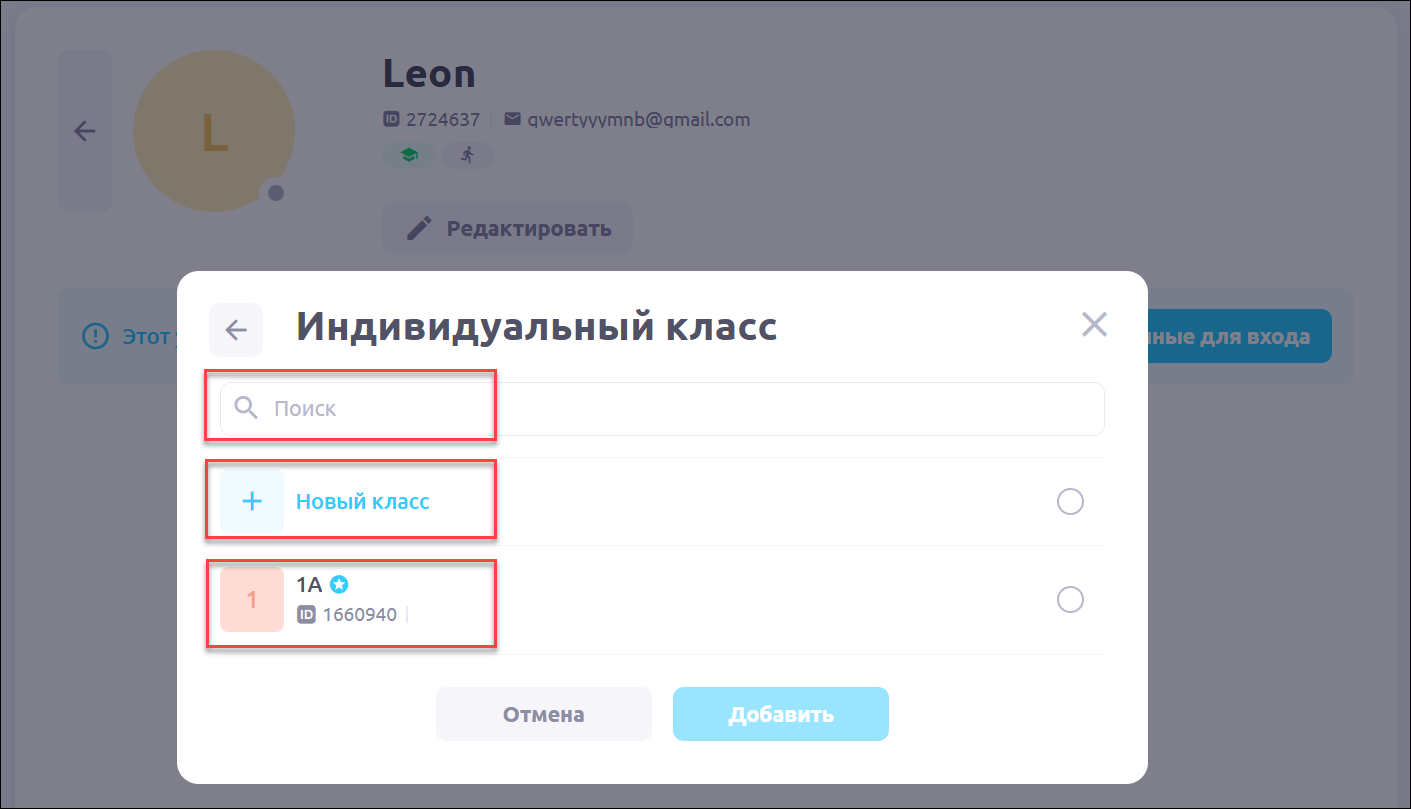 Π ΠΌΠ΅Π½Ρ ΠΊΠ»Π°ΡΡΠ° ΠΊΠ½ΠΎΠΏΠΊΠ° Π£ΡΠ΅Π½ΠΈΠΊΠΈ ΠΊΠ»Π°ΡΡΠ°. ΠΡΠ»ΠΈ ΡΡΠ΅Π½ΠΈΠΊΠ° Π² ΠΊΠ»Π°ΡΡΠ΅ Π΅ΡΠ΅ Π½Π΅Ρ, ΡΠΎ ΠΏΡΠΈ Π½Π°ΠΆΠ°ΡΠΈΠΈ ΠΊΠ½ΠΎΠΏΠΊΠΈ ΠΏΡΠ΅Π΄Π»Π°Π³Π°Π΅ΡΡΡ Π΅Π³ΠΎ Π΄ΠΎΠ±Π°Π²ΠΈΡΡ: