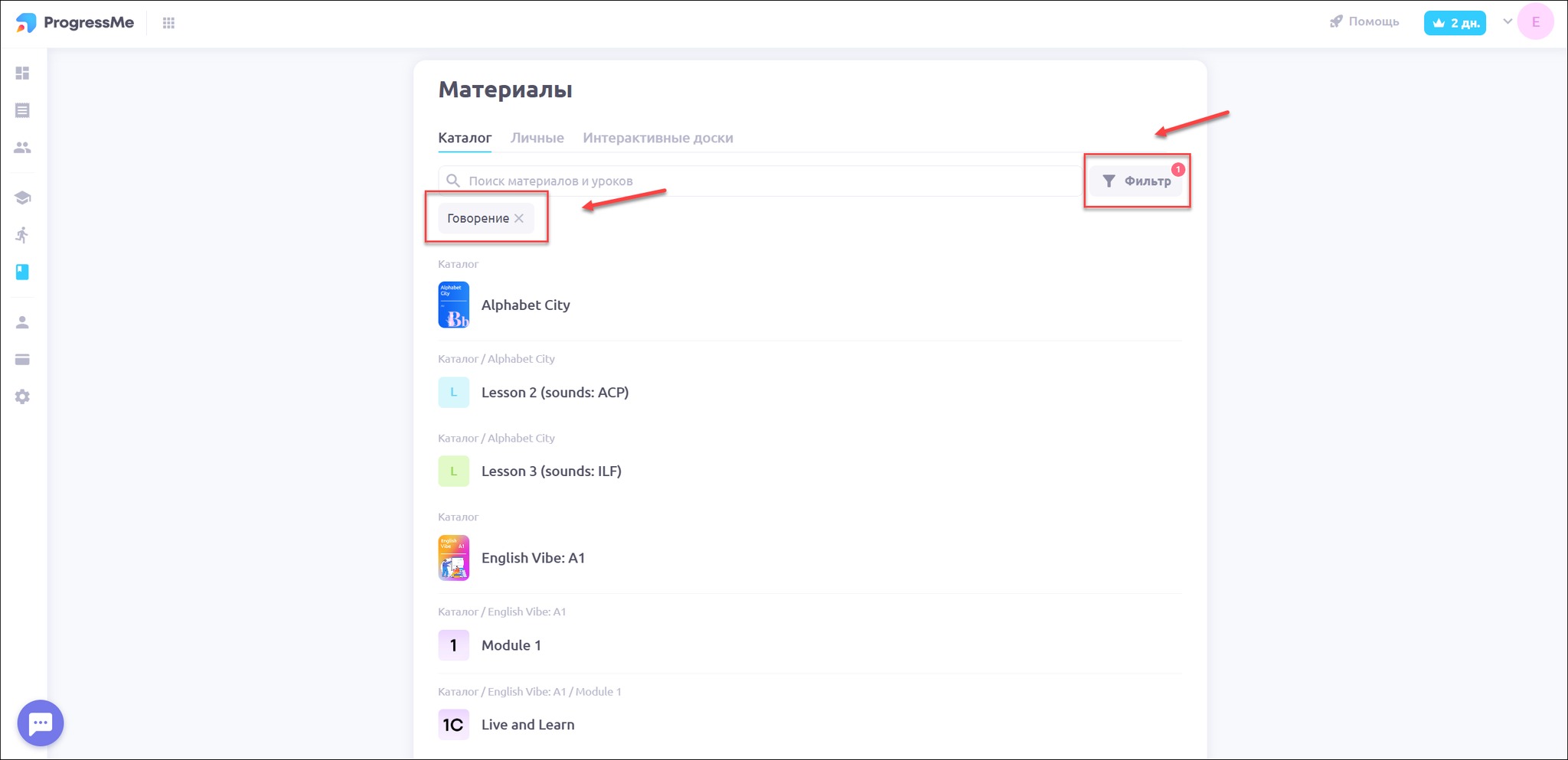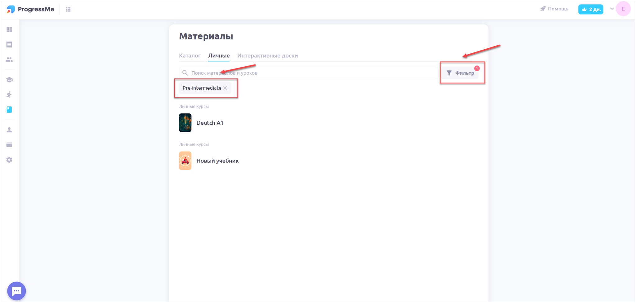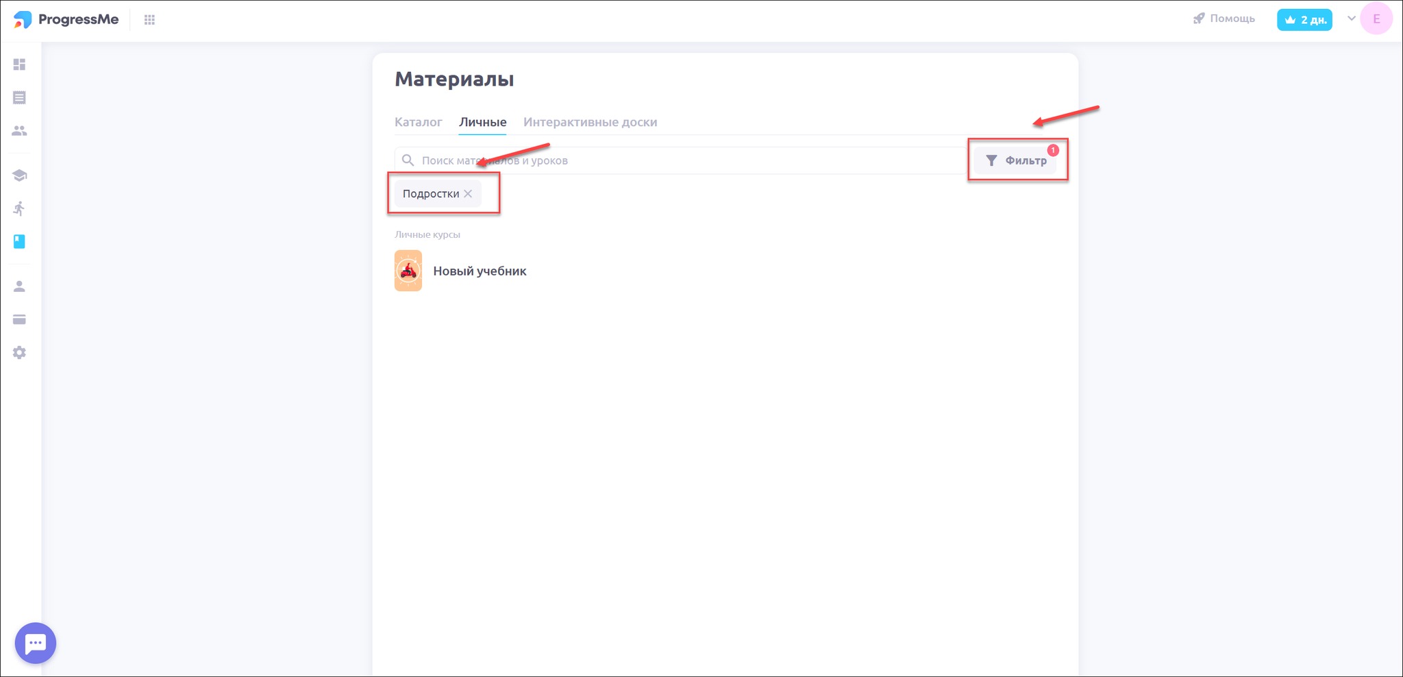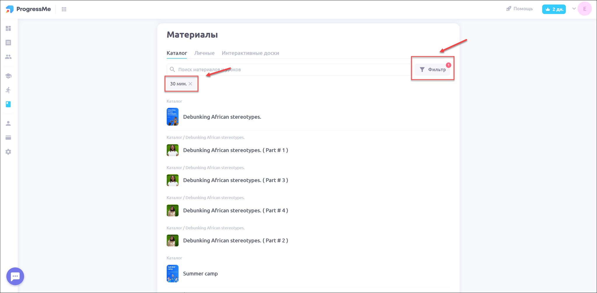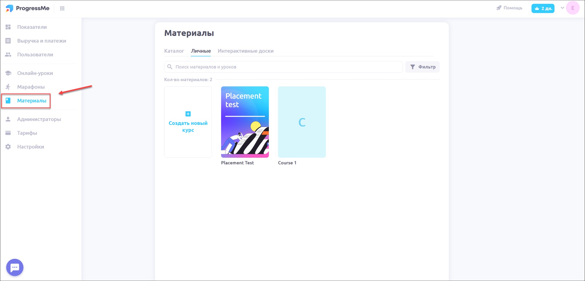 Когда в разделе Материалы собралось много обучающих материалов вы можете распределить их в папки по аналогии с файлами на компьютере. Это функция предназначенная для удобства работы с материалами. Вы можете создавать папки, наполнять их курсами, сортировать папки и материалы в разделе удобным образом, например, по сложности или по алфавиту.