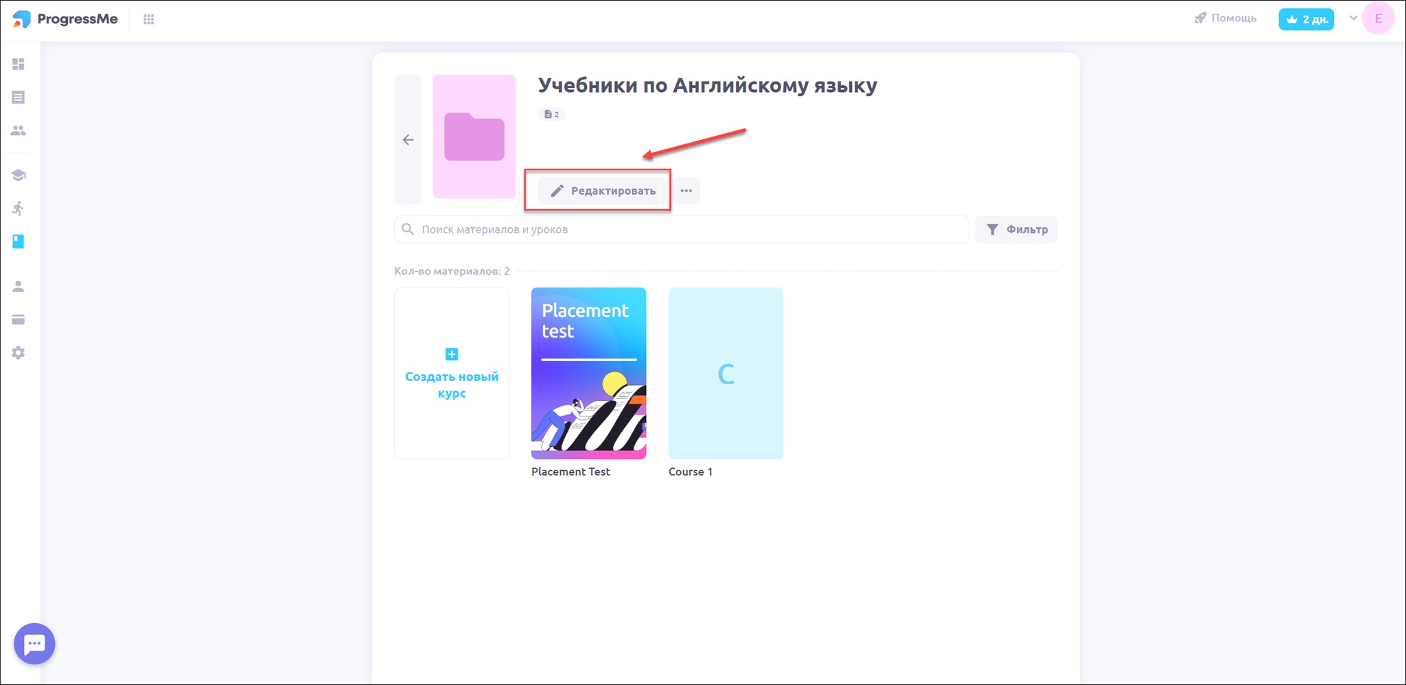 Откройте папку, в которую нужно добавить новый курс. Нажмите Редактировать: