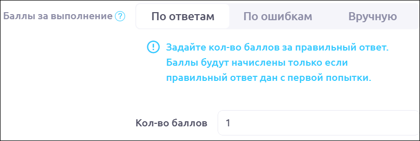 ΠΠΎ ΠΎΡΠ²Π΅ΡΠ°ΠΌ. ΠΠ°Π΄Π°ΠΉΡΠ΅ ΠΊΠΎΠ»ΠΈΡΠ΅ΡΡΠ²ΠΎ Π±Π°Π»Π»ΠΎΠ² Π·Π° ΠΏΡΠ°Π²ΠΈΠ»ΡΠ½ΡΠΉ ΠΎΡΠ²Π΅Ρ. ΠΠ°Π»Π»Ρ Π±ΡΠ΄ΡΡ Π½Π°ΡΠΈΡΠ»Π΅Π½Ρ ΡΠΎΠ»ΡΠΊΠΎ Π΅ΡΠ»ΠΈ ΠΏΡΠ°Π²ΠΈΠ»ΡΠ½ΡΠΉ ΠΎΡΠ²Π΅Ρ Π΄Π°Π½ Ρ ΠΏΠ΅ΡΠ²ΠΎΠΉ ΠΏΠΎΠΏΡΡΠΊΠΈ: