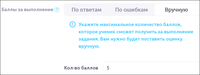 ΠΡΡΡΠ½ΡΡ. Π£ΠΊΠ°ΠΆΠΈΡΠ΅ ΠΌΠ°ΠΊΡΠΈΠΌΠ°Π»ΡΠ½ΠΎΠ΅ ΠΊΠΎΠ»ΠΈΡΠ΅ΡΡΠ²ΠΎ Π±Π°Π»Π»ΠΎΠ², ΠΊΠΎΡΠΎΡΠΎΠ΅ ΡΡΠ΅Π½ΠΈΠΊ ΡΠΌΠΎΠΆΠ΅Ρ ΠΏΠΎΠ»ΡΡΠΈΡΡ Π·Π° Π²ΡΠΏΠΎΠ»Π½Π΅Π½ΠΈΠ΅ Π·Π°Π΄Π°Π½ΠΈΡ. ΠΠ°ΠΌ Π½ΡΠΆΠ½ΠΎ Π±ΡΠ΄Π΅Ρ ΠΏΠΎΡΡΠ°Π²ΠΈΡΡ ΠΎΡΠ΅Π½ΠΊΡ Π²ΡΡΡΠ½ΡΡ: