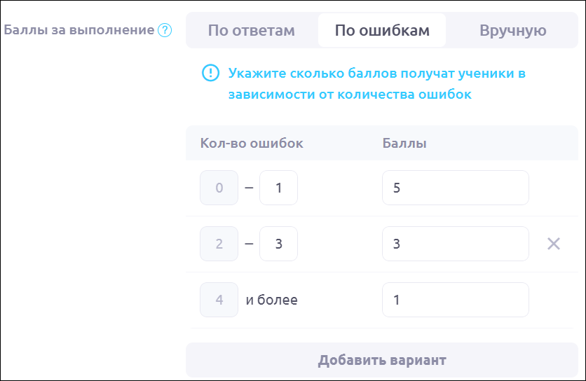 ΠΠΎ ΠΎΡΠΈΠ±ΠΊΠ°ΠΌ. Π£ΠΊΠ°ΠΆΠΈΡΠ΅ ΡΠΊΠΎΠ»ΡΠΊΠΎ Π±Π°Π»Π»ΠΎΠ² ΠΏΠΎΠ»ΡΡΠ°Ρ ΡΡΠ΅Π½ΠΈΠΊΠΈ Π² Π·Π°Π²ΠΈΡΠΈΠΌΠΎΡΡΠΈ ΠΎΡ ΠΊΠΎΠ»ΠΈΡΠ΅ΡΡΠ²Π° ΠΎΡΠΈΠ±ΠΎΠΊ: