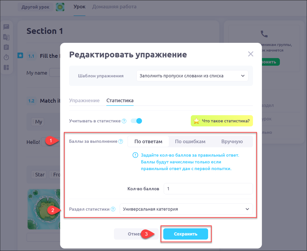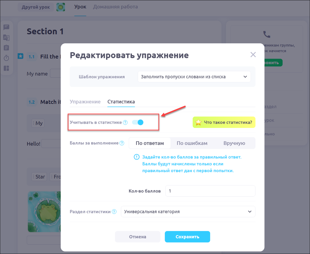 Π£ ΡΡΠ΄Π° ΡΠΏΡΠ°ΠΆΠ½Π΅Π½ΠΈΠΉ Π΅ΡΡΡ Π²ΠΎΠ·ΠΌΠΎΠΆΠ½ΠΎΡΡΡ Π²ΠΊΠ»ΡΡΠΈΡΡ ΡΡΠ½ΠΊΡΠΈΡ ΠΎΡΠ΅Π½ΠΊΠΈ ΠΎΡΠ²Π΅ΡΠΎΠ² ΡΡΠ΅Π½ΠΈΠΊΠ°(-ΠΎΠ²) Π² ΠΎΠΏΡΠ΅Π΄Π΅Π»Π΅Π½Π½ΠΎΠΌ ΠΊΠΎΠ»ΠΈΡΠ΅ΡΡΠ²Π΅ Π½Π°ΡΠΈΡΠ»ΡΠ΅ΠΌΡΡ