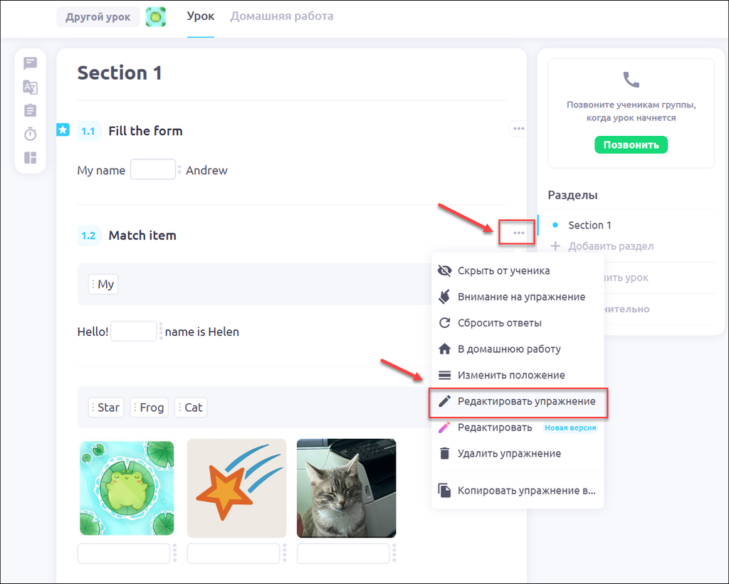 ΠΠ°ΠΆΠΌΠΈΡΠ΅ Π½Π° ΡΡΠΈ ΡΠΎΡΠΊΠΈ ΠΌΠ΅Π½Ρ Π² ΡΠΏΡΠ°ΠΆΠ½Π΅Π½ΠΈΠΈ ΠΈ Π²ΡΠ±Π΅ΡΠΈΡΠ΅ Π Π΅Π΄Π°ΠΊΡΠΈΡΠΎΠ²Π°ΡΡ ΡΠΏΡΠ°ΠΆΠ½Π΅Π½ΠΈΠ΅: