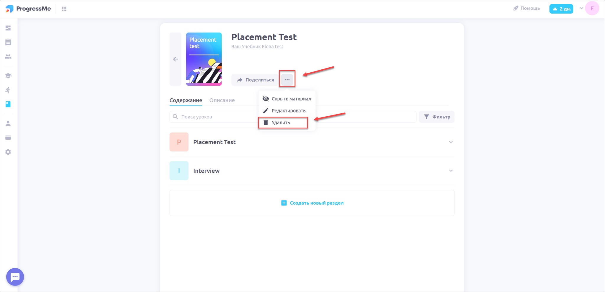 Любые материалы можно удалить из своего профиля на платформе. Для этого нужно: