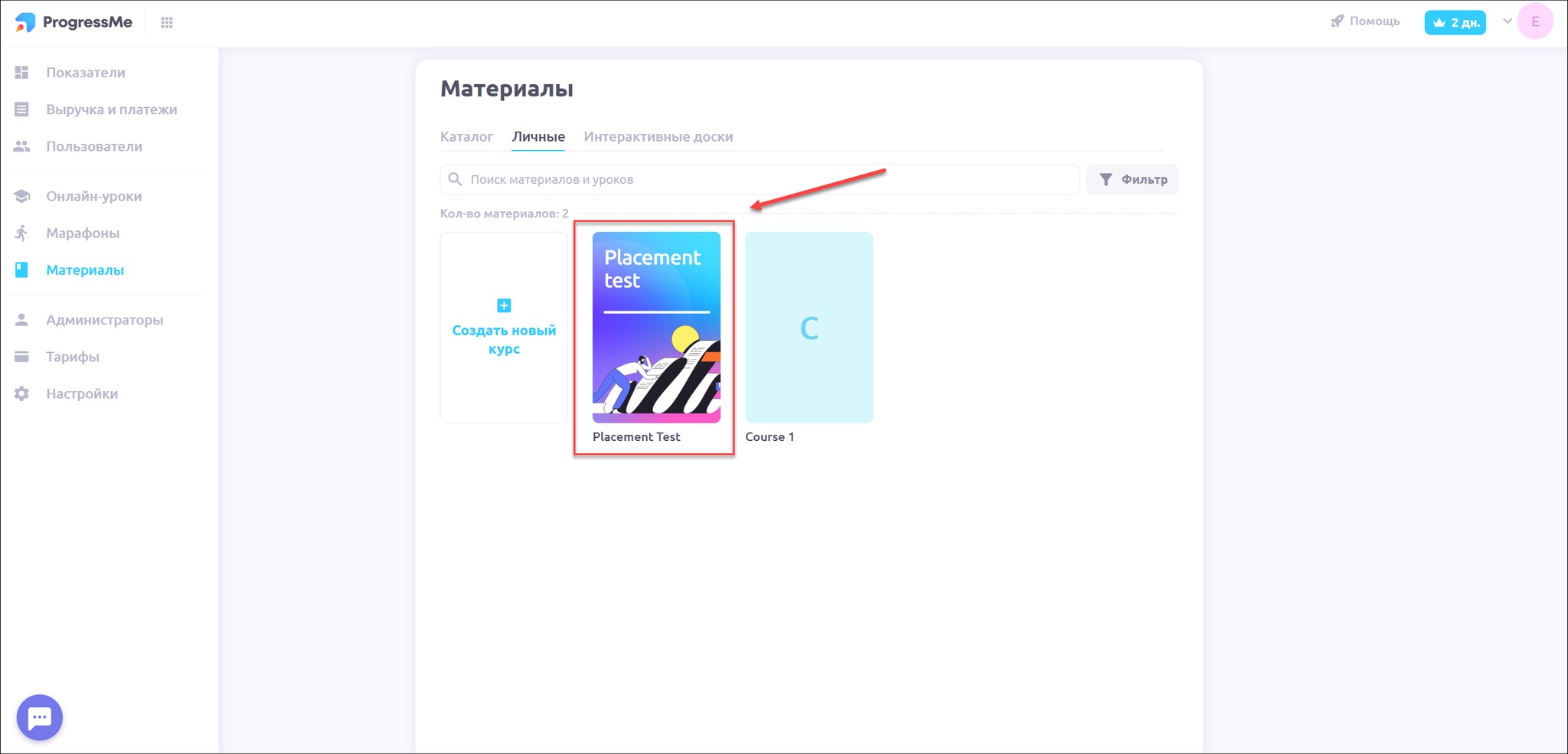 Открыть раздел Материалы, вкладку Личные:
