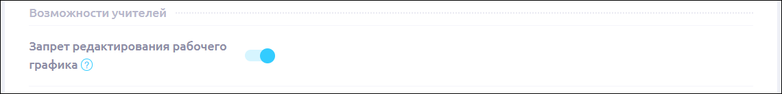 Запрет редактирования графика позволяет школе установить централизованный контроль над расписанием учителей. Если эта настройка включена, преподаватели не смогут самостоятельно указывать или изменять свои рабочие и нерабочие часы. Это актуально для школ, где график определяется административно или по договорённости с преподавателем.