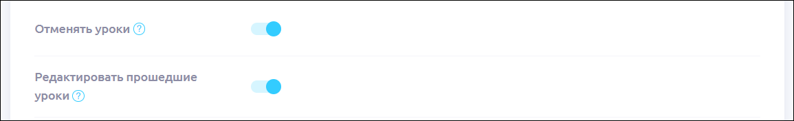 Отмена уроков означает удаление занятия из графика. Если функция разрешена, преподаватель может отменить предстоящий урок без согласования с администрацией. Однако прошедшие уроки не подлежат редактированию или удалению, если не включён специальный тумблер Редактирование прошедших уроков. При его отключении отменить уже проведённый урок может только администратор.