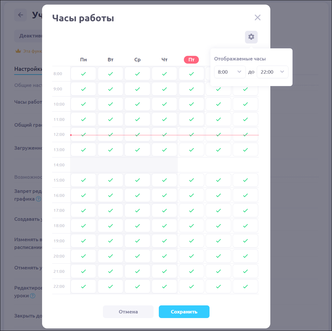 Если преподавателей несколько, настройка рабочего времени становится обязательной — от неё зависит планирование занятий и доступность учителя для учеников.