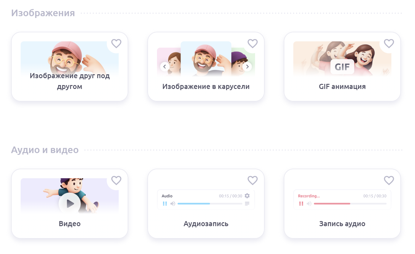 Кроме того, вы можете закрепить любимые шаблоны — просто нажмите на символ ♡, и они появятся в разделе Избранное вверху страницы. Нажмите на серое ♡ снова, чтобы удалить шаблон из Избранного.