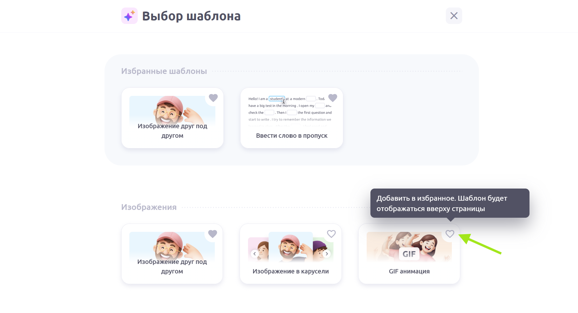 Сохраняйте любимые шаблоны — они всегда будут вверху страницы.