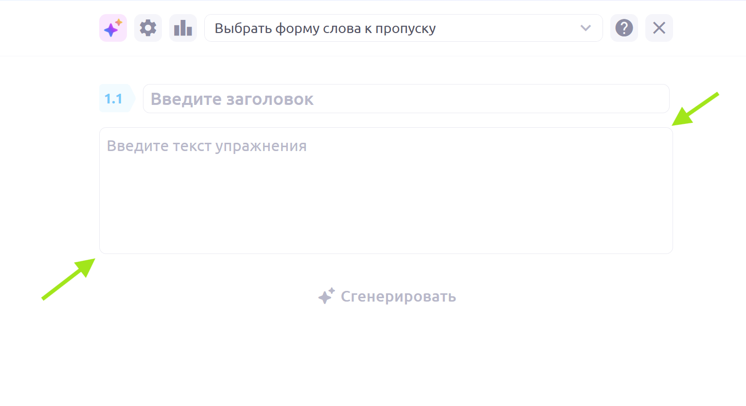 Ничего лишнего при создании упражнения: только текст и нужные инструменты.