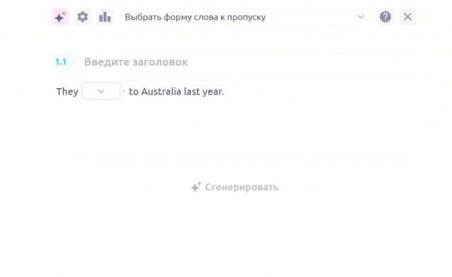 Доступно к шаблонах: Ввести слово к пропуску, Выбрать форму слова к пропуску, Выбрать форму слова к изображению, Тест, Отсортировать слова по колонкам, Сопоставить слова, Набор слов для изучения.