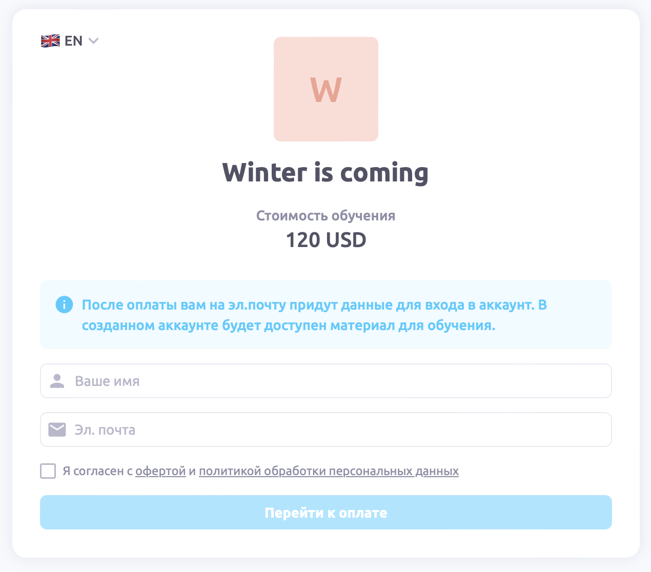 При нажатии на «Перейти к оплате» участник будет перенаправлен на страницу оплаты выбранной вами платежной системы.
