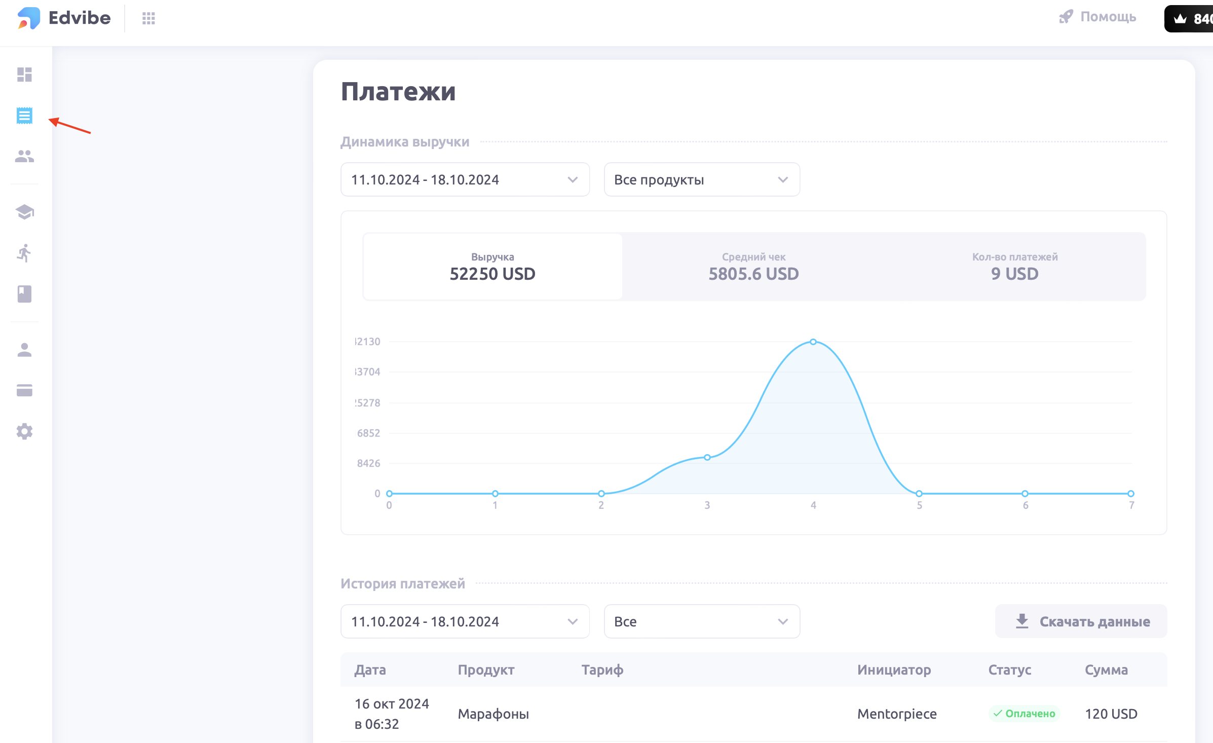 Когда вы настроите прием платежей на ProgressMe, в кабинете администратора школы появится раздел Выручка и платежи. Там вы сможете отслеживать поступающие платежи, а также следить за финансовыми показателями.