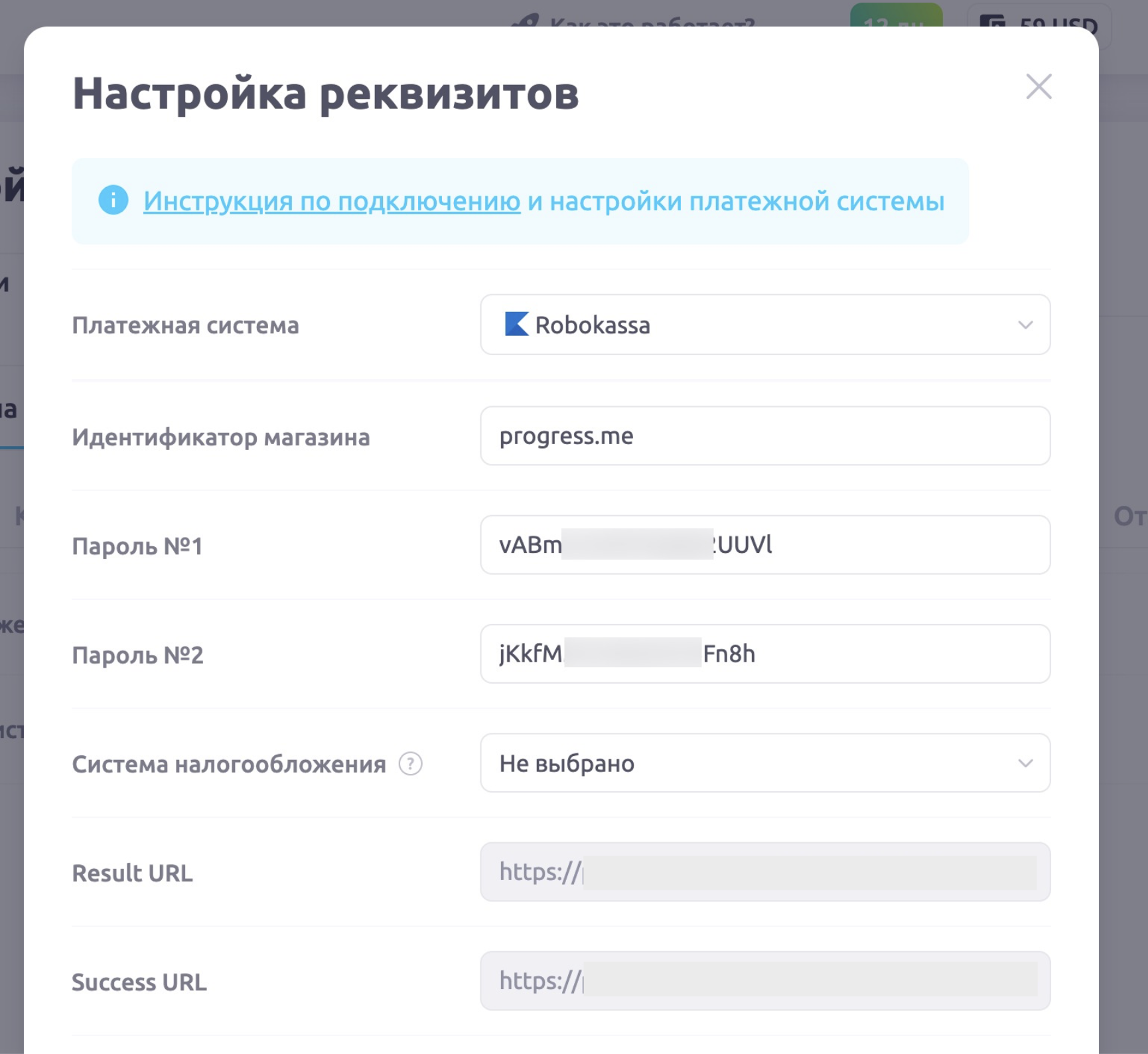 В этом же разделе есть поля Result URL и Success URL. Скопируйте ссылки из соответствующих полей в настройках платежной системы на нашей платформе и вставьте в настройки магазина.