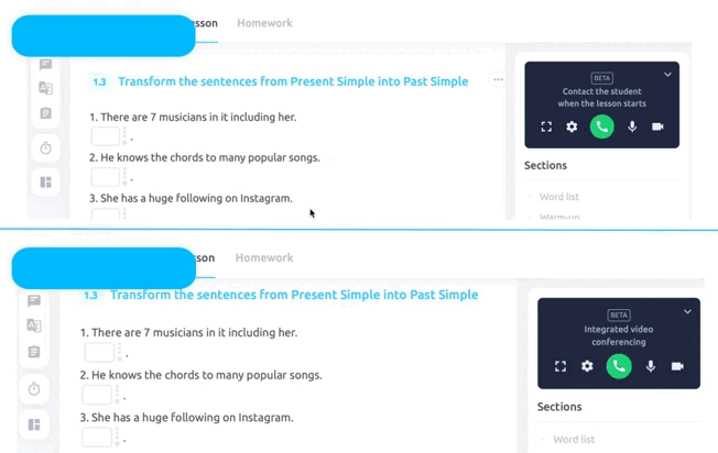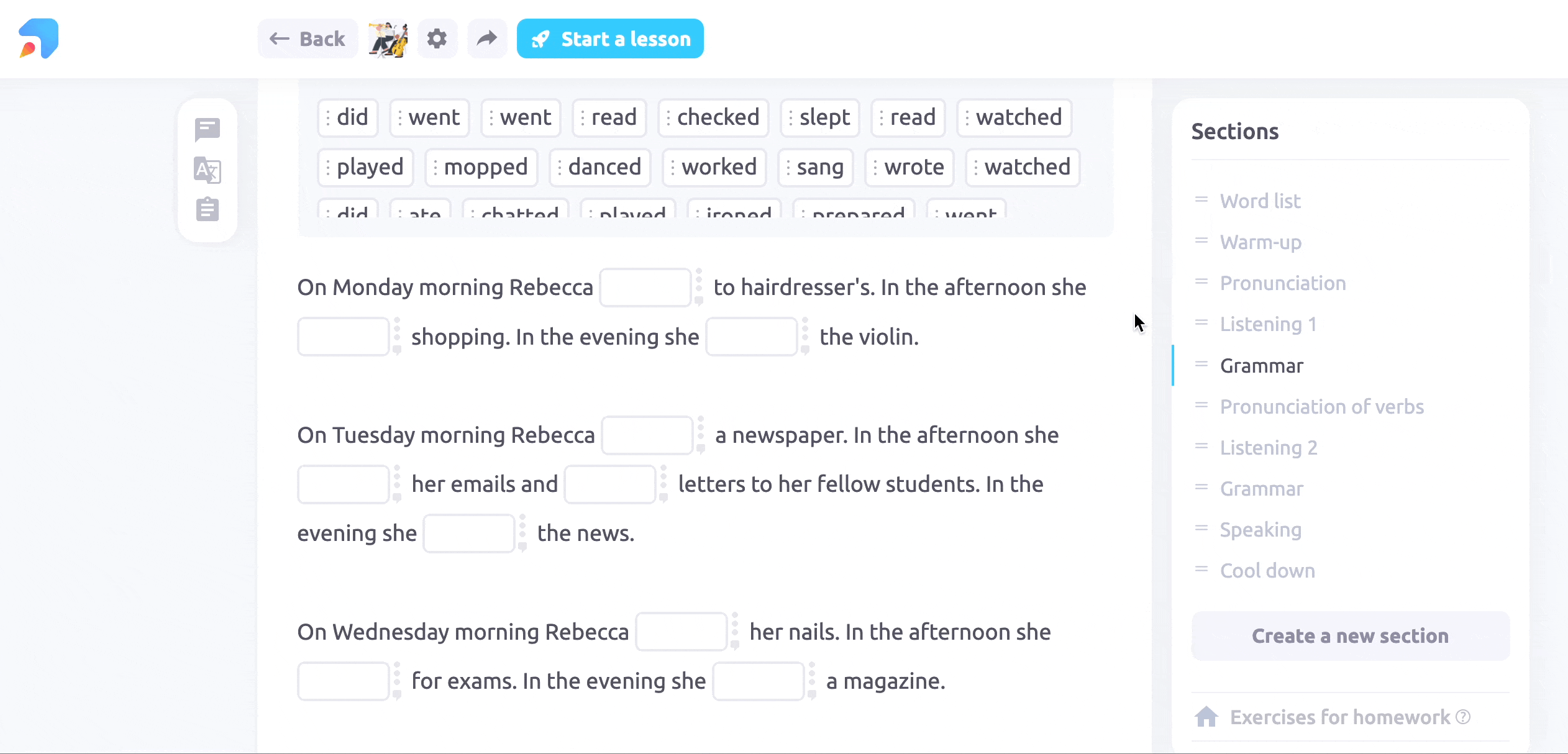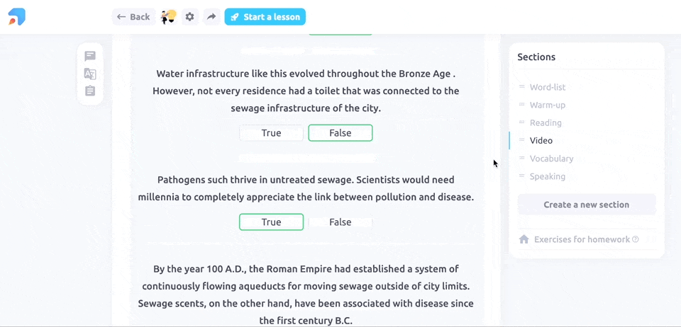 In the “Word ordering”, “True or false”, and “Unscramble” templates, you don't need to scroll right or left to see each block anymore. We put them one below another, so you will see them right away.