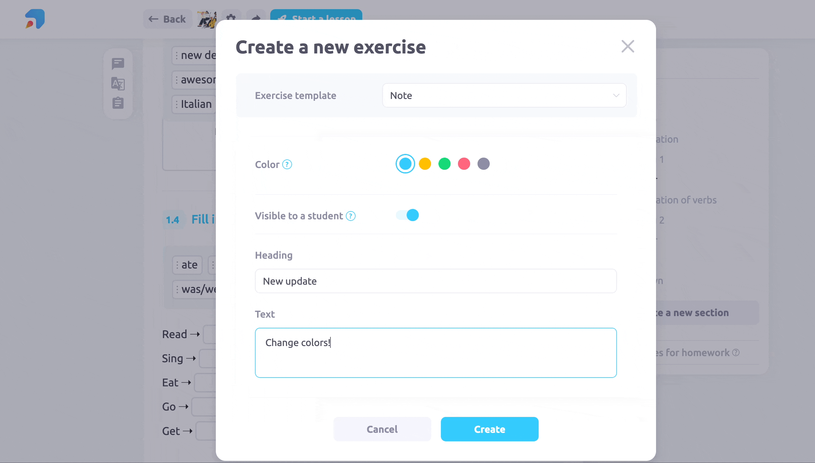 In the “Note” template, you can now choose background color for notes and change the titles.